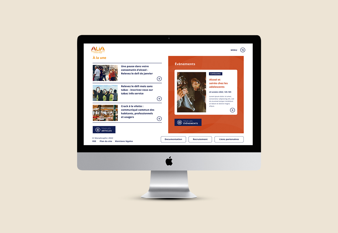 Après avoir accompagné la structure dans l’édition de ses supports de communication papier, MonaGraphic s’est vu confier la refonte du site internet, à présent en ligne ! Retrouvez-y toutes les informations diffusées par ALiA mais aussi des articles, évènements et offres d’emploi !