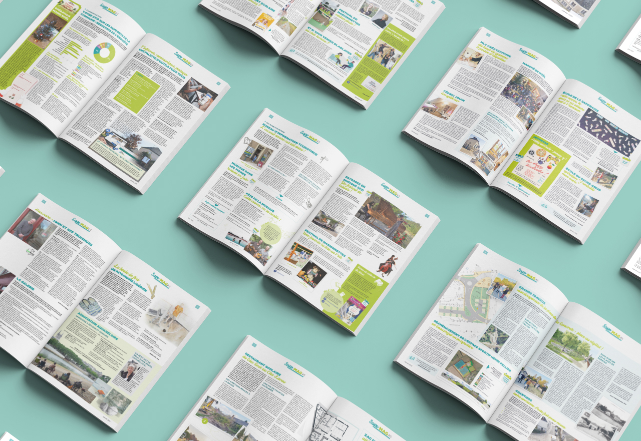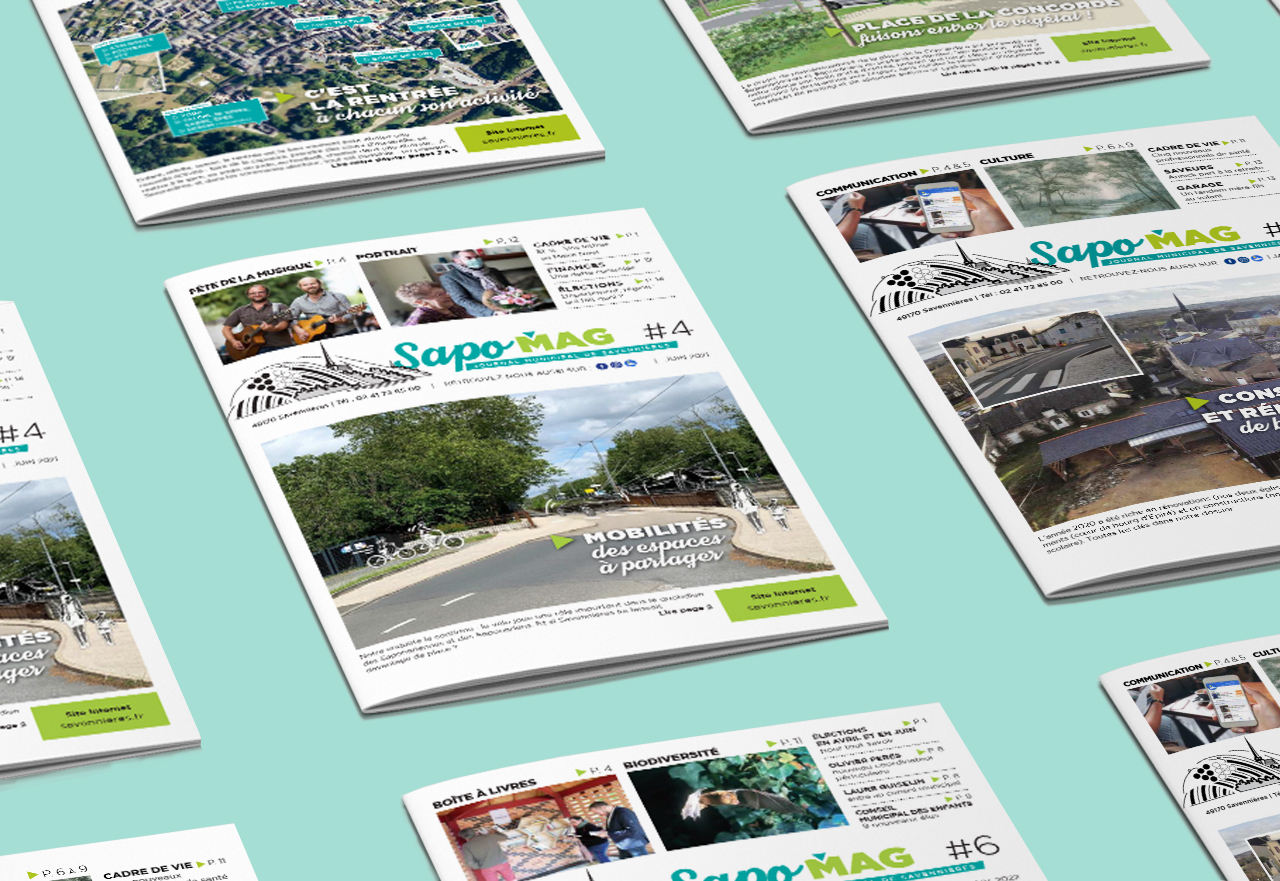 MonaGraphic accompagne la Mairie tout au long de la conception du chemin de fer et prend en charge la mise en page et les éventuelles créations graphiques qui viennent valoriser les thématiques abordées.