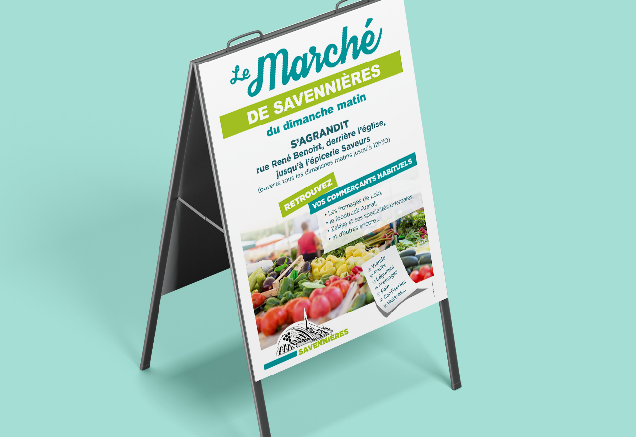 Dans la foulée, l’agence a également mis en forme les informations et visuels devant figurer sur un panneau destiné aux visiteurs du marché en place chaque dimanche matin !